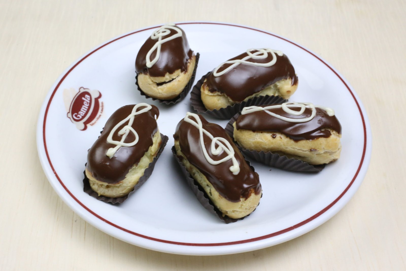 A Bomba de Chocolate (éclair) da Gamela é feita a mão, sendo recheada com chocolate (estilo brigadeiro). A massa fina e o recheio generoso garantem uma sobremesa que encantará a você e seus convidados.