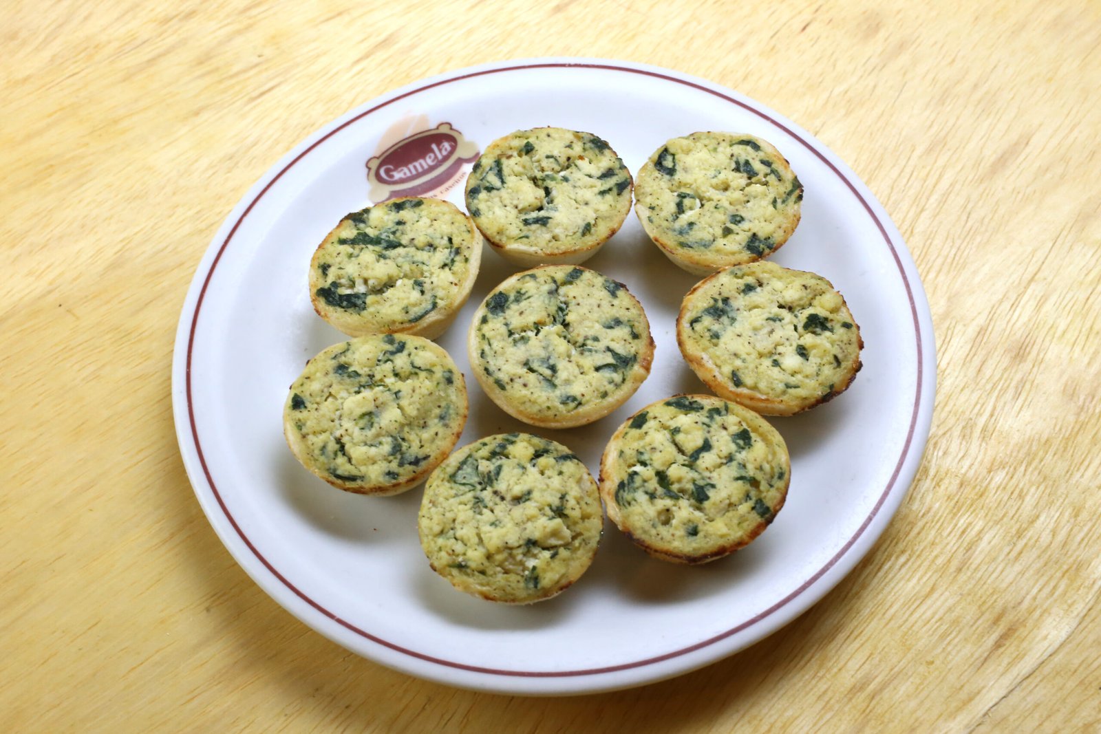 A mini Quiche de Ricota com Espinafre da Gamela é feita com uma base amanteigada e o recheio leva queijo ricota com espinafre. Também disponível no formato maior estilo Torta Salgada.